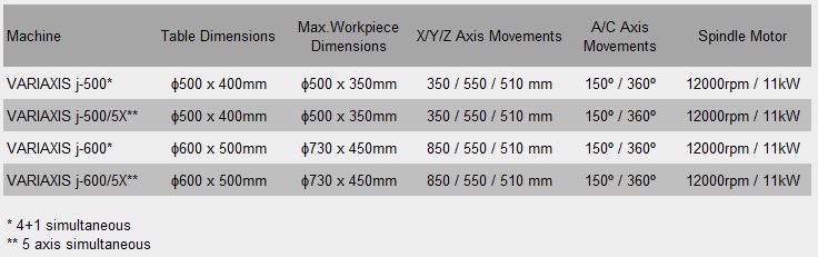- Simultaneous 5-axis machining (j-500/5X and j-600/5X)