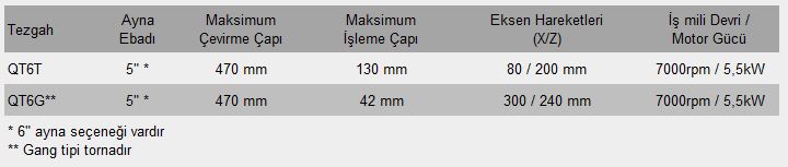 QUICK TURN 6G 5 inç ayna boyutuna ve 130 mm maksimum işleme çapına