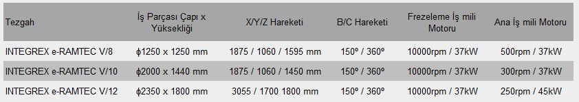 INTEGREX e-RAMTEC V serisi standart INTEGREX e-V serilerinin işleme