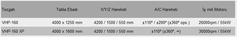 - Büyük iş parçası kapatesitesi: 3000 kg maksimum yük ağırlığına ve 4000 x 1250 mm tabla ölçülerine sahiptir.