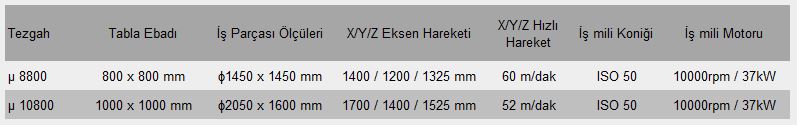 µ serisi yüksek torku ve yüksek hızdaki iş mili ile yüksek verimlilikte işleme sağlar.